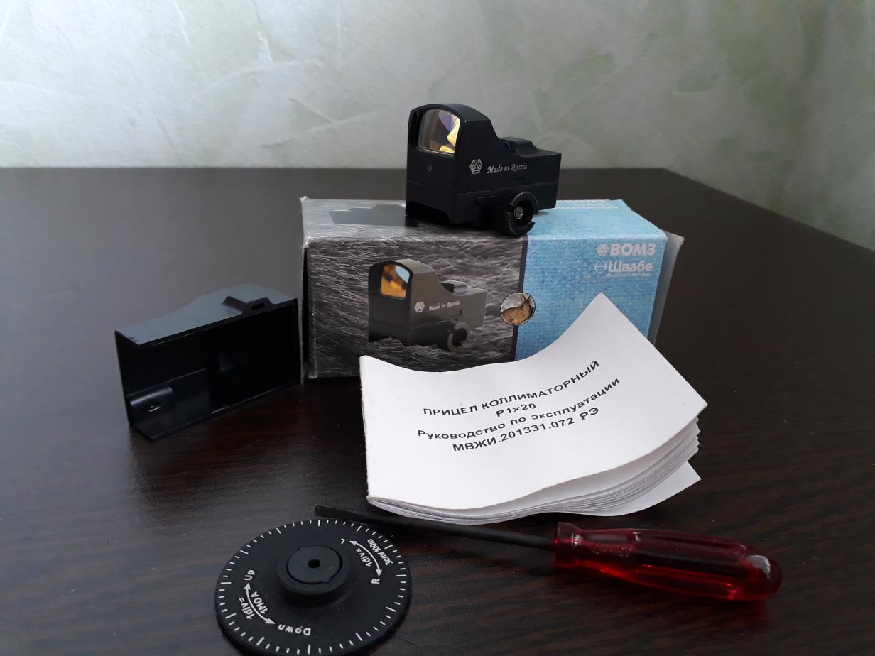 Прицел коллиматорный Пилар Р1х20. Можно ставить на 12 калибр. Весит 80 г. Крепление wever