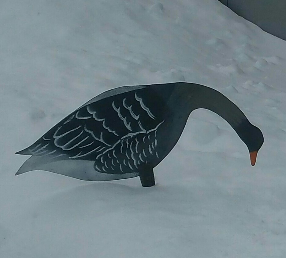 После приобретения сминаемых чучалок профили оказались не нужными. Понимаю, что тяжелые, громоздкие и плоские, но может кому для массовости сгодятся. Итак предлагаю 21 шт.профилей гуся. 13 шт. кормящиеся и 8 шт. сторожевых. Сам выпиливал, сам красил, и сам использовал на охоте. Присесть гуси в них не пытались, но нормальные налёты были и не мало. Гусей с этими профилями добывал ( когда нормально маскироваться начал) так что вполне рабочие. Бонусом отдам резиновую советскую уточку. За свои изделия хочу 1 тыс. руб.