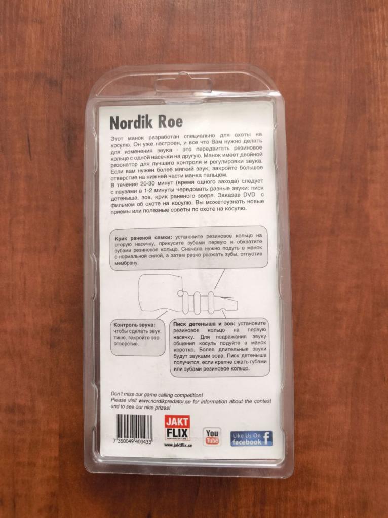 Новый Манок Nordik Predator Roe на косулю (крик самки, крик детеныша), черный, пластик. Манок на косулю Nordik Predator Roe разрабатывался как имитирующий зов самки, однако работает и как имитатор крика детеныша. Также получается и голос самца. Изготовлен из морозоустойчивого пластика и может использоваться при низких температурах. Манок уже настроен, все, что вам нужно делать — это передвигать резиновое кольцо на мундштуке в разные позиции (выемки на манке) для изменения звука. Манок имеет двойной резонатор для лучшего контроля и регулировки звука. Если вам нужен более мягкий звук, закройте большое отверстие на нижней части манка пальцем. В течение 20–30 минут (время одного захода) следует с паузами в 1–2 минуты чередовать разные звуки: писк детеныша, зов, крик раненого зверя.