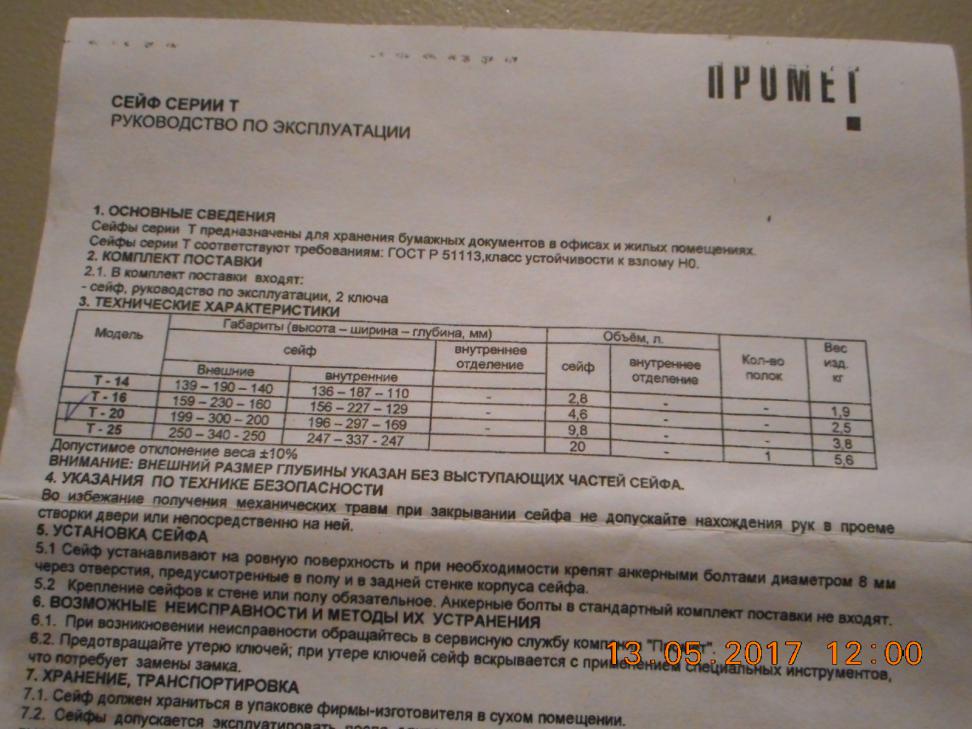 1. Компактный. Класс устойчивости к взлому Н0. ВШГ - 20-30-20 см