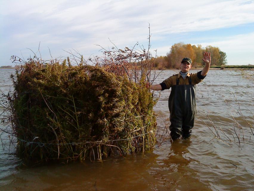 Чучела с утра ставили по темному скрадок из подручных материалов.