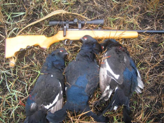 Было сегодня и два промаха,но лишь потому,что была неправильно оценена дистанция.Дистанция была ближе,а сетка у моего прицела милдот(отдельное спасибо Корбану за предоставленную оптику).Мелкан был пристрелян на 50 м,очень примерно,моими широкими шагами.Но ошибка была проанализирована и следующий выстрел опять на примерно 100м принес четвертого петуха.