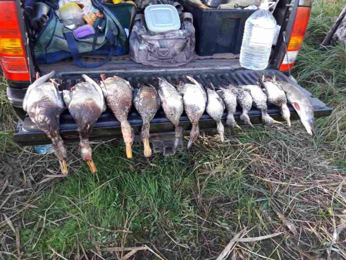 Наблюдения с пятницы на воскресенье. Мелекесское о/х, уютный затончик ( 100х300 м. достаточно большого залива. Утрянки гораздо интенсивней вечерок. Утка до сих пор часто летает смешанными стаями. Кряква/свиязь/чиры или кряква/широконоска/чиры. Иногда небольшие группы из одного чирка или кряка. Во второй половине субботы появился красноголовик и чернеть, но мало пока, чтоб целенаправленно охотиться. Тем не менее утка подходит. Если сохраниться ветер Северо-восток/север можно будет перебираться на большую воду. По темному, особенно утром, чирок падает в чучела без всяких облетов. Прочие присаживаются эпизодически. На манок откликаются исправно. В результате неплохо постреляли с товарищем. В активе 17 шт.: кряква, широконоска, свиязь, красноголовик, чирок. Из приятного: чистый дуплет по крякам ( селезень/утка) и пара красноголовых с одного выстрела. Из грустного: три не нашли. Утка почти вся чистая и вполне упитанная. Селезням осталось головы дозеленить и на хвостах кудряшки завить. 7,5 24 гр. работает исправно, но по крякам наверное лучше перейти на 6 или 5, а 7,5 оставить на добор с воды. В субботу пришел гусь. Наблюдал косячок 50-60 голов - с воды на поле около 17-00, там и раскруживался. Поле заприметил. Как то так. На фото первые две зорьки.