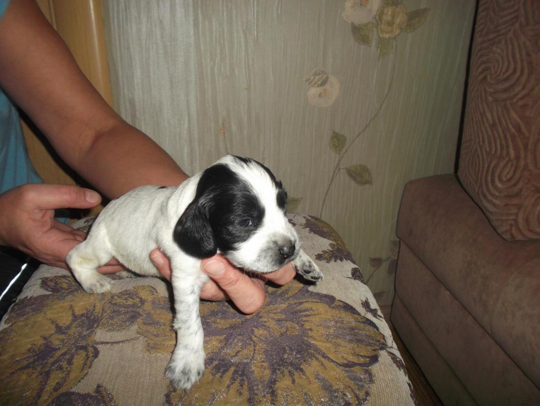 Дата рождения - 19.10.2017 Кинологическая организация, спланировавшая вязку (если не плановая указать): СОКОС АССА. Место нахождение щенков - г. Ульяновск. Отец: Кольт 02.05.2015 г.р., ВПКОС - 5943/16; окрас - черно-пегий вл. Лаптев А.(Кировская область) Племенной класс : второй Оценка экстерьера : отлично от: отец — Агат 5241/11 Жарков А.А (Саратов) мать —Айрис 5758/15 Власов А.Г. (Ульяновск). Титулы: 3 место в ринге на Межрегиональная выставка охотничьих собак «Весна Поволжья 2016» (06.03.2016) Дипломы: III б/л Мать: Альба, 20.12.2010 г.р., ВПКОС - 5641А/14, черно-пегая, вл. Малеев С.В. (Ульяновск). Племенной класс: элита; Оценка экстерьера: очень хорошо Все дипломы за рабочие качества с указанием по виду дичи:1-IIб/л.,2-IIпер, 2-IIIу.,8-IIIпер, 1-IIIкур,1-IIIб/л. Титулы: Лучшая молодая собака первых Ульяновских состязаний (с отстрелом) по перепелу в 2013 году. Полевой Победитель Ульяновских межрайонных состязаний спаниелей по полевой, болотно-луговой и боровой дичи 05-07.08.2016. ЧЕМПИОН Межрегиональная выставка охотничьих собак «Весна Поволжья 2016» (06.03.2016) ЧЕМПИОН Самарской областной выставки охотничьих собак 2016 г. Заводчик - тел.89603705617 ИРИНА Документы РОРС и РКФ