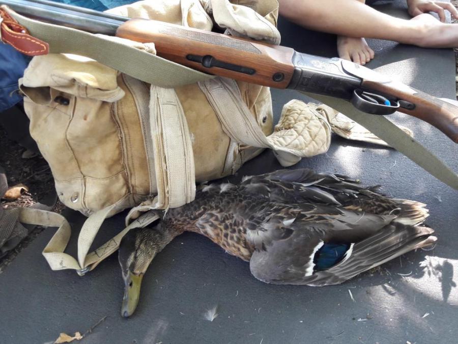 Так несолоно хлебавши вернулись в лагерь. Ужин, чай, треп, вдыхали воздух, слушали ночь и считали звезды. Что еще нужно для счастья?В этот выходной оно у нас было! Тима не раз повторил:-Папа! как здесь здорово! В палатке спали в одних трусах,хотя под утро за стенкой было не жарко. С утра побродили по лугам в поисках куликов, но везде было сухо и травища по пояс - бекасов нет! Сын предложил папе проехать на вчерашнее место и побродить вдоль камыша, в надежде поднять с подхода. Попили чаю и вперед. Но затея оказалась пустой, ни одного подъема! Решил пролезть по камышу в то место, куда накануне утянул уть, может там какая-нить баклуша есть или окошко, а может повезет.... И метров через 20 краем глаза заметил чуть заметное движение сбоку, метрах в 4.... Лысуха? Нет, кряк!!! Начал делать от меня ноги, пришлось ему с 7 метров вальнуть в очко. Простите за стилистику! Оказался молодой селех, сеголеток, еще не начал даже линять. Подранка добрали!
