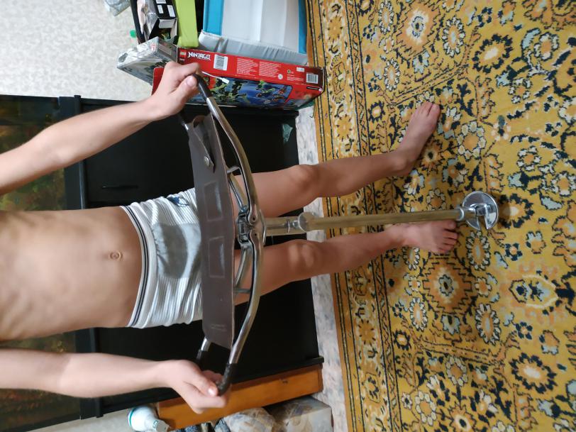 Вот тут я задолбался со своим стулом елозить. В итоге хрустнул. На фото уже ремнем для крепления грузов обматал и досижывал. Вот на нем, кстати, и балансируешь. То в одну сторону уйдет, то в другую. Да и низковат оказался, ноги затекали.