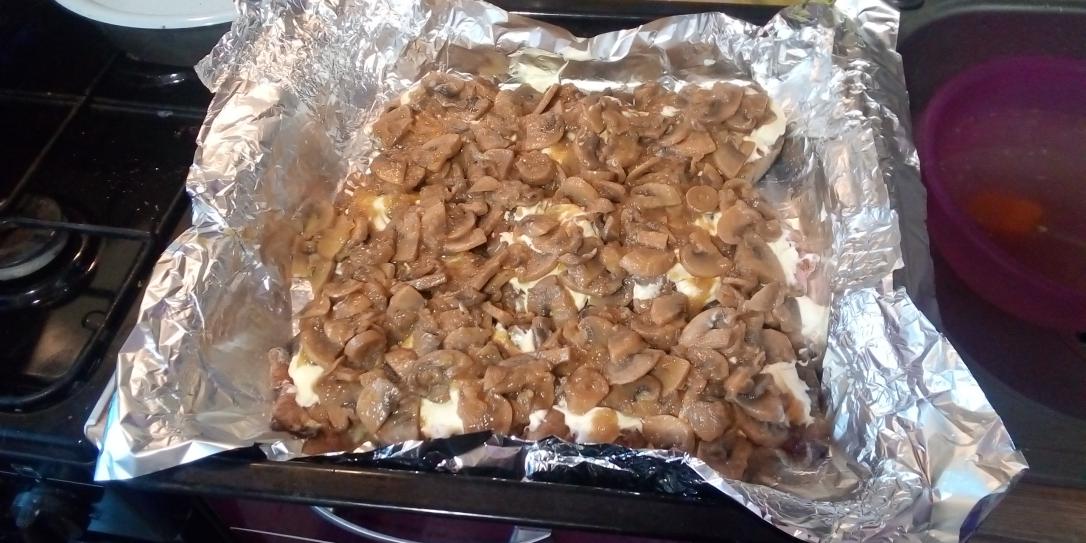Летом изловить его не получилось и вообще такой способ рыбалки как-то не задался. Поэтому сходил в Ашан на рыбалку и притащил оттуда двухкилограммовую тушку сома. ![]() Для начала из тушки вырезаются порционные куски филе. Далее с помощью соли и специй для рыбы маринуем куски в холодильнике не менее двух часов. Достаём противень, наливаем на него немного воды. В противень укладываем постель из фольги, на постель капаем немного масла и распределяем его по всей поверхности. Выкладываем маринованного сома, мажем его сверху майонезом. На майонез выкладываем предварительно обжаренные с луком шампиньоны. Иногда использую маринованные грибы. Верхним слоем идёт тёртый сыр. Сыра люблю побольше, чтобы шуба была потолще ![]() Включаем духовку на 150-180 градусов и отправляем туда "сома под шубой" на 30-40 минут. ОЙ! пока писал, забыл таймер поставить! ![]() Приятного аппетита!
