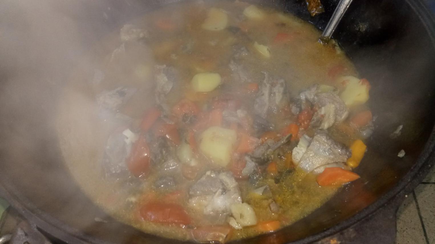 Нус, с Праздником! Блины были на завтрак. Харош. Пооода шепчет. Тандыр во двор и погнали. Для начала уха. В Афганском казане. Картошка, лук, морковь, рыба, специи , соль и заливаем водой. Водрузил на тандыр. Чего за зря воздух греть. Пол часа. Клапана спускаем. И за стол. Тем временем курицу по полам. Блин крупновато. Еще раз по полам. Специи, соль, масло и соевый соус. Мариновалась три часа. На решетку и в тандыр. На дно сковородку и картошку дольками. Иначе жир с куры течет на угли. Подгорает. Мясо пропитывает. Не айс привкус. 40 минут и на стол. Зачетно получилось гости рады.