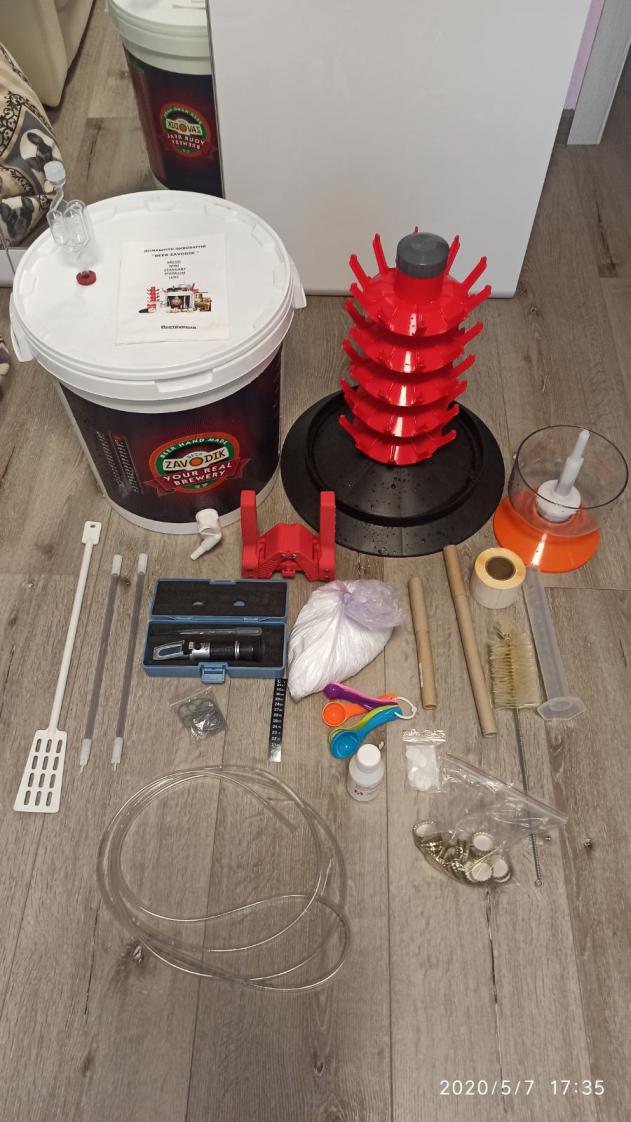 Не мое это...Комплектация: - Бак 25л - Стойка для сушки бутылок - Мойка для бутылок - Рефрактометр - Ареометр малый - Ареометр большой - Кронен-крышки 20шт - Бутылки стекло 10шт - Ёршик - Трубка для розлива 2шт - Шланг - Жидкость для дезинфекции инструмента - Дезинфицирующие таблетки - Мерная колба - Термометр - Мерные ложки - Гидрозатвор - Лактоза 1кг - Укупорка кронен-пробок - Лопатка - Этикетки для бутылок 5000р. |