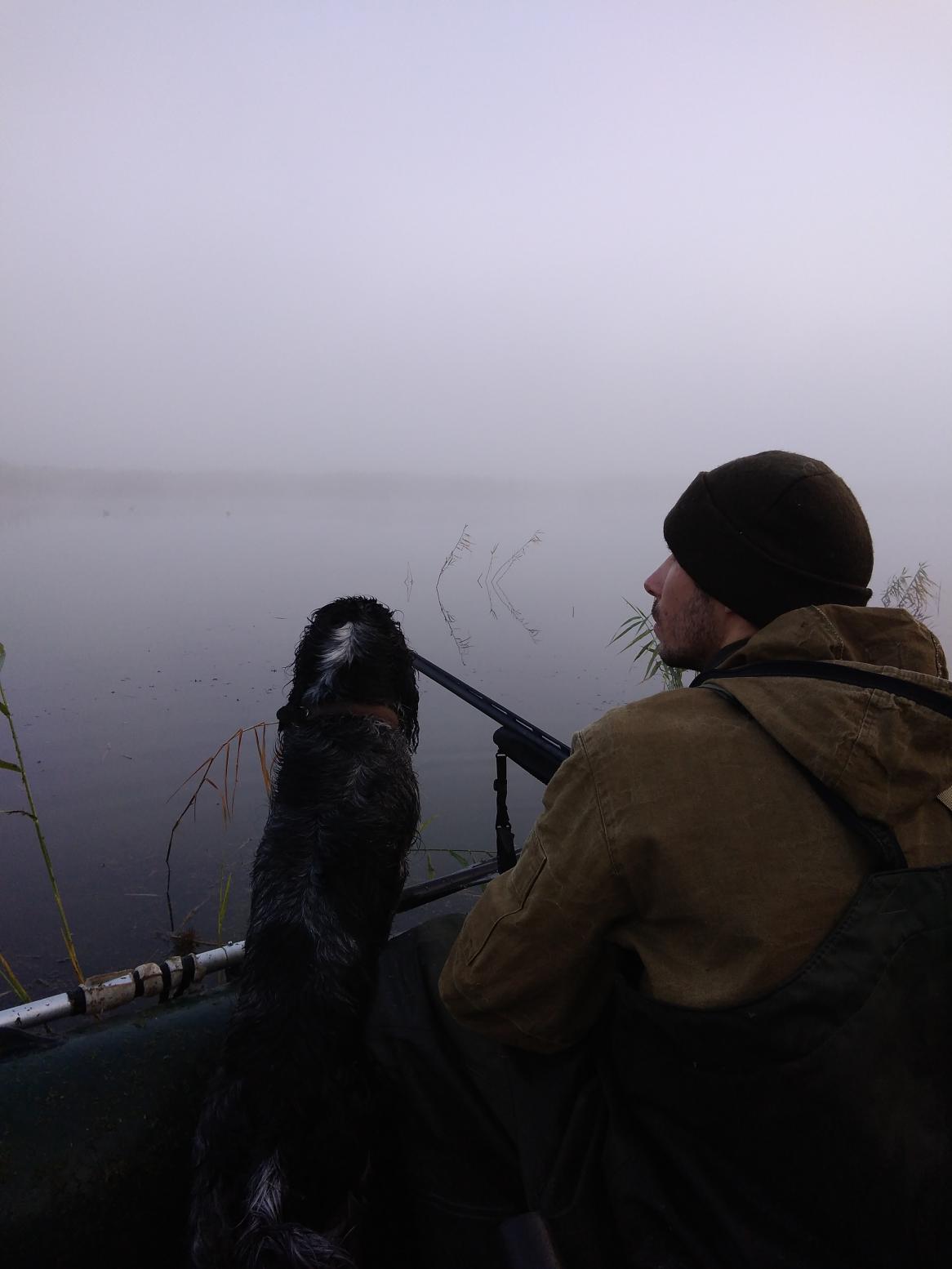 На прошлых выходных выбрались на утрянку. На въезде в угодья попали в туман. Он был такой густой, что пока привязывали верёвку к лодке товарища, чтобы он под мотором дотащил нас до точки, закружились и как оказалось в дальнейшем поплыли не в ту сторону))) Расставив чучела и забурившись в камыш стали ждать налетов. Ещё в сумерках на приличной высоте шла одиночка, позже после поиска трофея в камыше это оказалась лысуха, хотя сразу и не понятно было. С рассветом, туман становился периодически ещё гуще, что даже чучела небыло видно. Следующий налёт был в виде двух чирков, которых приземлили 5-кой прямо в чучела. Ну и под зановес, добыли бекасика. В общем, все что налетело, уехали с нами... Вот такая выдалась охота.