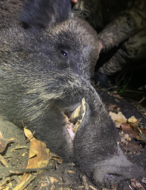 В эту лунную ночь приняли решение на проведение охоты ночью и надежд на удачный исход практически не было… «Небесный фонарь» так сильно светил, что можно было охотиться без ПНВ, видимость была как днем. Нашли перспективное место при объезде, хорошо, когда выходной день – времени много, засветло приехали, посмотрели все тропки, покопы… Егерь выписал путевки, провел инструктаж и мы поехали охотиться на секача. Тень от луны подсказывала про вероятный неудачный исход и про то, что нужно с полей «сматывать удочки» ближе к лесу. Оренбургская область богата лесами, а вокруг сплошные поля, засаженные излюбленным лакомством кабанов – кукуруза и подсолнух, поля убраны, а значит легко выследить зверя и попытаться к нему подойти на расстояние уверенного выстрела. Еще к 18-00 часам, когда опустились сумерки мы просто стояли и готовились к охоте или фиаско, шепотом переговариваясь и делясь историями, т.к. на ночных охотах не виделись друг с другом уже 10 дней. Уже и не привычно…)) Как вдруг на поле из леса, несмотря на луну, вышел средних размеров секач, его «срисовал» Иван, карабин стоял прислоненным к деревцу… Кабан просто развернулся и пока я вошкался с карабином и упором, конечно же, уже был очень далеко… Поворчали, поспорили, но везде нужно видеть позитив – луна светит – кабан идет! Через 2,5 часа ожиданий решили проехать до другого поля, скошенной семечки и глянуть на обстановку там. Доехав до угла посадки, обволакивающей огромный овраг, пошли тихо ступая вдоль поля, метров 5 прошли как Иван вновь увидел жирующего кабана – он казался очень крупным, в общем наш вариант. Предательски луна сзади нас вышла из-за тучки и кабана, можно приглядевшись уже видеть без прицелов, стало очень светло. «164 метра, Лех» - прошипел мой друг, наблюдавший за процессом через гляделку с дальномером. «Не подойдем, от нас тени от луны, придется стрелять так, сможешь?» Не велика дистанция, но не привычные 100 метров, готовлюсь. Кабан шагает в нашу сторону, прицел на кратность 5,4… Секунды кажутся минутами, часами… И вот он подставил бок… В голове мелькнула мысль – «по лопатке», что б наверняка… Выстрел, характерный шлепок, кабан уходит в овраг, второй выстрел – по-моему промах, третий…. Кабан скрылся в овраге за деревьями… Ваня посмотрел на меня, я развел руками – был же «шлепок»… Досада… Обида… Калибр 30-06, как говорят охотники – «обычно никто не «бегает»»… Докинув тройку патронов в магазин идем искать… Следы нашли минут через 25-30, спасибо дальномеру и моему опытному напарнику. Крови нет – не подранок? Уже хорошо… Обшарив, в течении часа, всю траву и валежник до оврага поняли, что просто я промазал … Край оврага не позволил так же ничего увидеть, «теплого» не обнаружено. Крутнув еще пару кругов по круг заходного следа, Иван спустился в овраг на 10 метров, далее непролазная чащоба. «Лех, что-то «светиться» метров через 100. Пошли-ка…» Опять эта его «чуйка»! Как лезли через ветки и валежник под углом 45 градусов рассказывать не стану, вернее расскажу попозже…))) 7 метров лежит кабан, хороший крупный секач… Вдруг животное вскакивает, попутно подбрасывает лежалый дубок и глаза моего напарника, отскакивающего в сторонку, я не забуду очень долго… «Леха, стреляй!!!». Надо добавить, что сегодня была моя очередь быть с ружьем, у Ивана с собой фонарик и гляделка… Спасло нас только то, чт