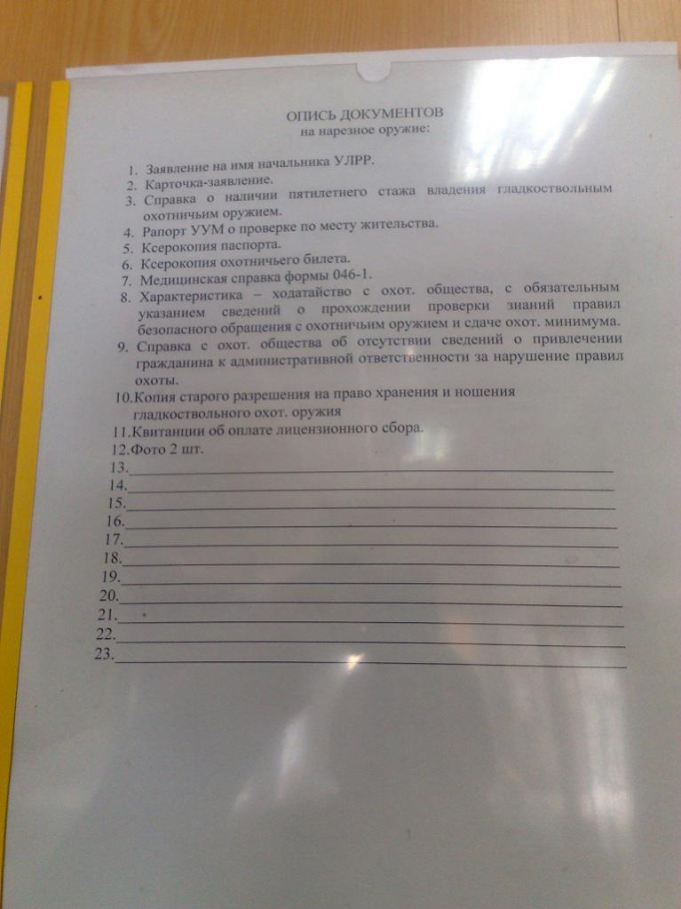 Не забудьте сделать ксерокопии всех документов (паспотр, охотничий, действующая лицензия, можно и рапорт участкового с мед.справкой для повторного обращения на другой ствол) да и фото лучше сделать штуки 4. (мои потеряли, пришлось доносить, хорошо запас был)