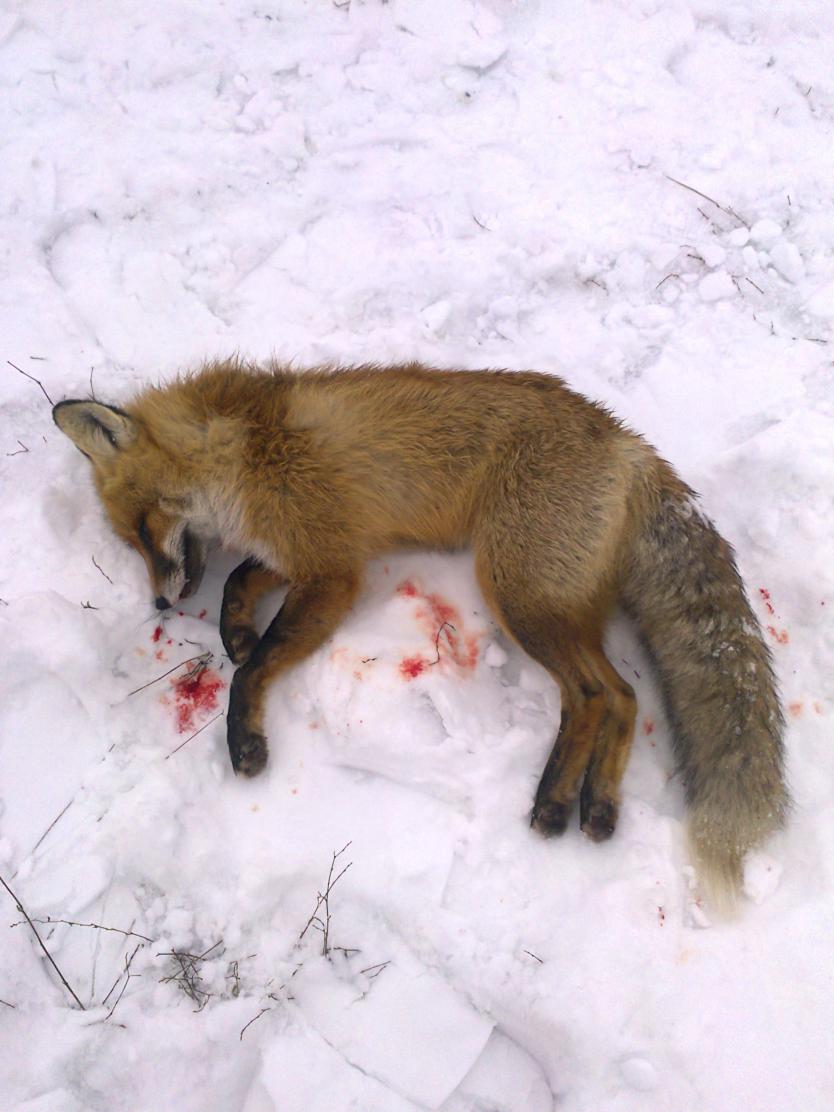 Вчера прибыл с Вятской земли из стольного града Кирова, оставил пару дней здоровья с училищными друзьями. Во вторник само собой ничего на счет охоты не вышло, а сегодня с утра пораньше батя разбудил телефонным звонком и предложил в окно глянуть. Решение было принято ежеминутно. Часов в 11 собакен поднял лисичку в густом осиннике и началось... Первый раз своими глазами видел как мастерит рыжая. Собака еще далековато а лис идет мимо меня метрах в 40 (густой подлесок и стрелять нет смысла, стою наблюдаю, но на мушке держу). По ходу движения лис забирается на достаточно большое поваленное дерево, проходит по всей его длине и на самом конце останавливается и слушает собачку. Стрелять не стал, продолжил наблюдение. Дождавшись когда появится собака лис спрыгнул и скрылся в густых кустах дикого торона. Собачке дойдя до дерева пришлось потрудиться над уловкой лиса, тем не менее гон продолжился. Сначала отдалился метров на 100 влево от меня, а потом начал приближаться. Я замер в ожидании появления лиса, дистанция сокращается 50-40-30 метров, но ничего не происходит и вдруг в 20 метрах справа от себя замечаю лиса, который сидит и вместе со мной слушает собаку. Посидев немного начинает двигаться в сторону гона, но с другой стороны кустов. Не доходя 10 метров до этих самых кустов, за которыми работала собака, разворачивается и движется сначало на меня, а потом поворачивается левым боком. Счастью моему нет предела, второй раз наблюдать за ним я не стал. Выстрел и лис без движения утыкается в снег. Подошли к машине, попили чайку и решили поискать зайку. Наткнувшись на след косого решили его поискать, но выйдя из машины увидели двух знакомых охотников немного в стороне. На наших глазах один из них с подъема взял неплохого зайчишку. Посовещавшись решили ехать домой. Не люблю я когда плечом к плечу охотятся разные компании. Все бы ничего да за собачку переживаешь, мало-ли что. Допиваем чай и едем домой. Вот как-то так прошла наша сегодняшняя охота.