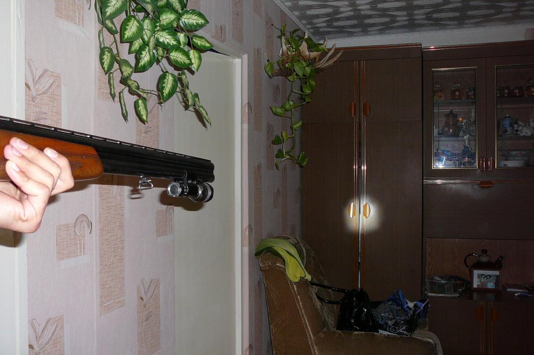Я не правильно выразился, не диаметр, а расстояние между центрами диаметров. От этого фонарь светит ниже оси ствола и не паралелен - на коротке нормально, чем дальше тем больше отклонение пучка света.