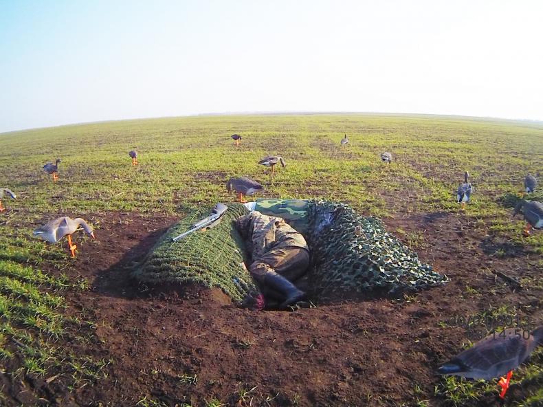 Я в том году не маскировался на паханном поле, просто лёг в борозду в чёрной куртке, и налетели, уже шасси выпускали собирались сесть в чучела, одного вальнул.