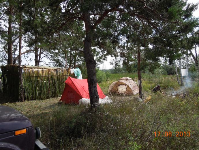 с полем всех. место парни заняли еще с четверга, я к ним в пятницу вечером приехал с товарищем. пока палатку раскинули, вещи стали раскладывать, слышим шлагбаум наш кто то ломает с матом-егеря с ментом подъезжают и удивляются, типа вы че это трезвые? соседи у вас уже лыка не вяжут. к вечеру шашлык, все дела, посидели. шершня пивом напоили-даже погладить себя дал)). в субботу с утра на воду. лет не шибко хороший. так, одна-две. но зато лысухи вобще страх потеряли- я в лодке сижу, а они метров в 20-ти дефилируют. вобщем за неимением утки на шулюм гидроворону пустили. вечером лета вобще не было, видимо плохо за охоту поднимали)) или непогоду утка почувствовала-ночью гроза, дождь зарядил до утра. в воскресенье с утра сворачиваться начали и в 10 утра уехали.