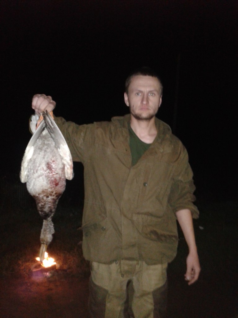 По всем признакам охота обламывалась. Товарищи засобирались уже, и даже уже уехали. Но не вынесла душа моя страданий, за полчаса с женой покидали вещи в машину и рванули "в поля". Час добирались до Михайловских, 10 минут на собраться, запрыгнуть в "заброды" и всё, вот она, родная... охота... темнело уже конкретно, пока добрел до плеса видимость упала здорово. Как раз товарищи навстречу-на сушу выходить решили. Без манков и без чучел, ну и пустые соответственно (на что рассчитывали-бог его знает). Уговариваю немного "повечерить" ещё, начинаю наманивать. 2 минуты проходит- есть налёт крякашей! Первый выстрел- падает хороший селезень: счет открыт. Темнеет ещё крепче, видимости почти никакой, только по зорьке и смотрим. А она, зараза, на глазах тает, не ждет! В общем наманил ещё несколько налетов, но били уже на звук практически, и без результата. Выходить решили когда над головой товарища крякаш развернулся НЕЗАМЕЧЕННЫМ! Вышли с болота, товарищи под благовидным предлогом слиняли в город, а я сел возле костерка утку потрошить да опаливать. Как раз подумалось потрошки кинуть в сторонку и посмотреть -вдруг лисичка навестит, по слухам бегает их тут несколько. Ощипал, опалил, распотрошил, сели с женой сарделек пожарить на костерочке, отдохнуть. Тут пес мой совершенно не охотничий заволновался, и в сторону кустов начал смотреть с особым усердием. Ну мы значения не придали, потому как сами нифига там не увидели. Вдруг вижу- из за бугорка морда рыжая. Под фонарем, бесстрашно так, вылезла. Я в её сторону направился, думаю посмотрю хоть, ружье то один черт в чехле, в багажнике, разряженное. Подошел метров на 20. Стоит. Смотрит. Молодая, глупая. Я ей говорю: иди отсюда, дурочка, не хочу тебя бить, мелкая ты совсем. Стоит и смотрит. Я рассердился, пошумел малехо- она в кусты и шмыгнула. Пес сидит наблюдает. Пришлось ему объяснять что не за ней ехали да и рано их бить, лисичек то. Вроде понял, но не одобрил. Жена наоборот одобрила, жалко вроде как рыжую. И тут опять вылазит. Я неспешно багажник открыл, ружье из чехла достал, два патрона "О" нащупал в сумке... Зарядил, в её сторону пошёл. Метров на 15 подпустила... Не хотел бить, да пришлось. А иначе пёс не простил бы...