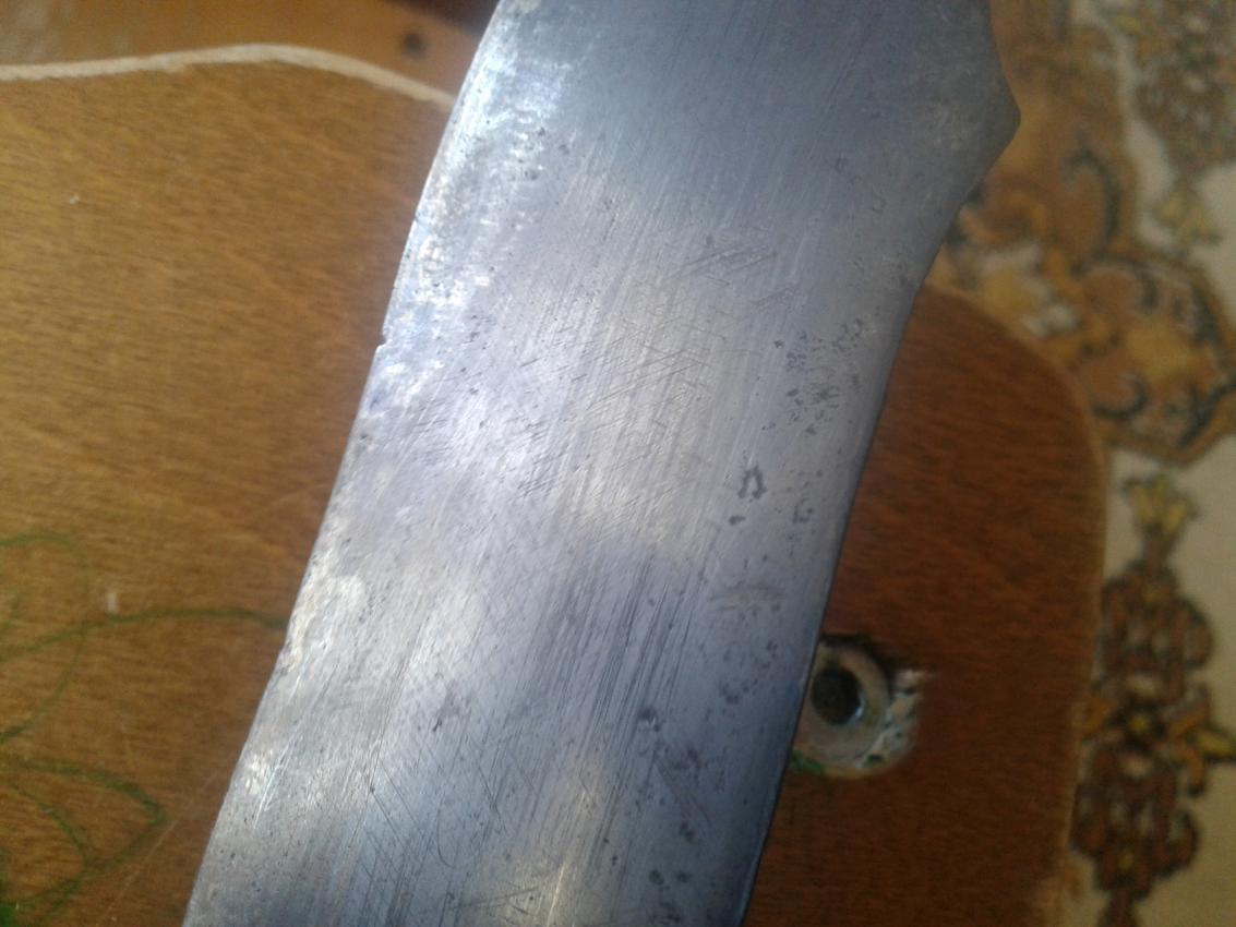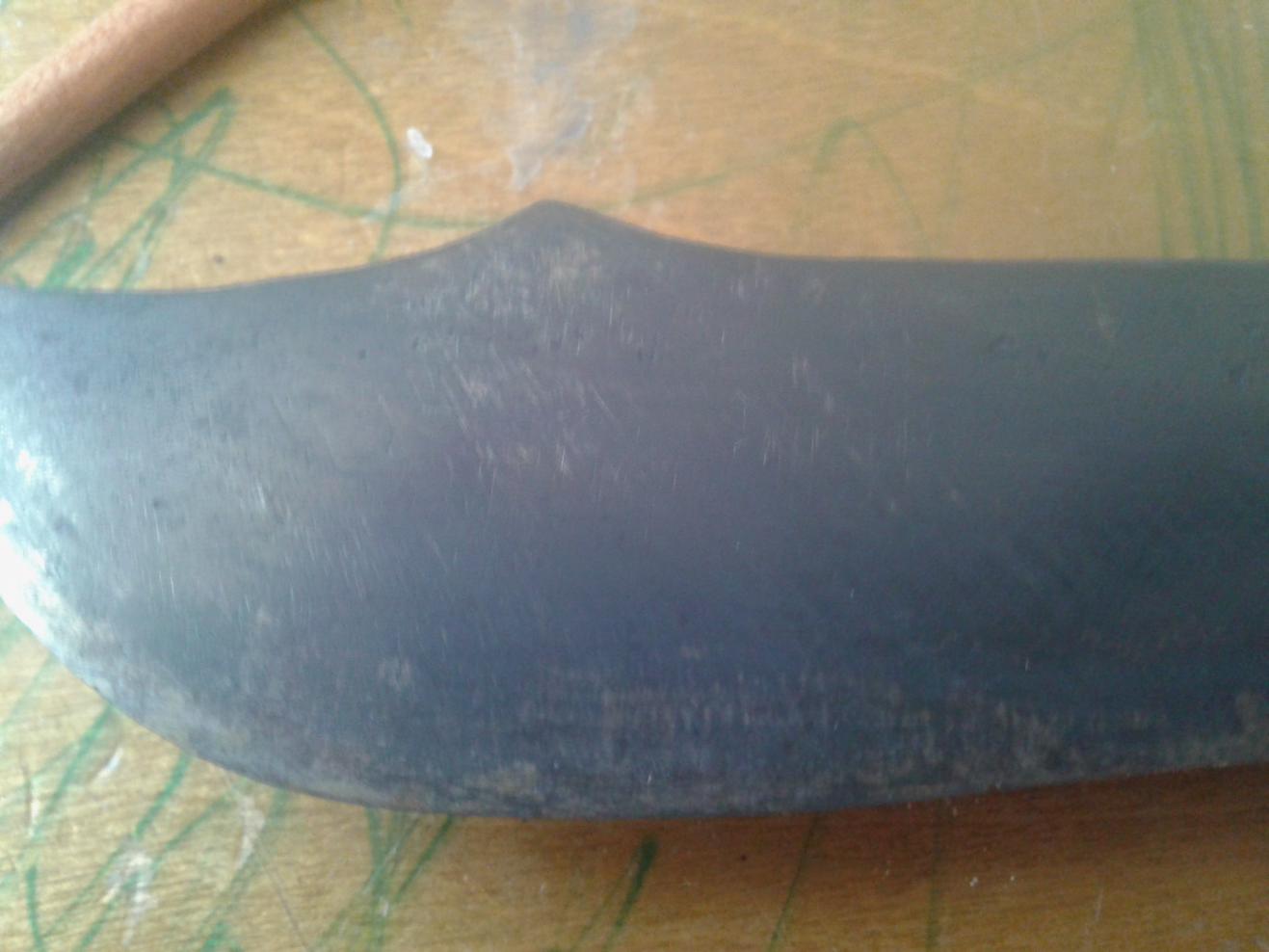 - покрыл нож между делом.нож из пилы. Пошол кисть мыть, мама им рыбу чистит.в крышке еще осталось немного. Взял его, чуть наждачкой почистил.не обезжиривал.