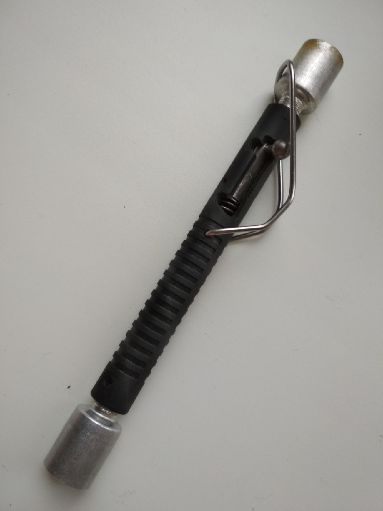 Ну для опытного охотника на медведей раз плюнуть. А для безоружной бригады остановочный пункт. Сутки простоя под лимон. Так себе прогресс. Если продолжим конкретно про мишек, то можно перейти во флудилку. А мой вариант сигнала охотника можно прикрутить для оповещения покушения на лодочный мотор. Бывает пришел охотник под мотором в протоку. Дальше ходу нет. Лодку вытащил, взял одноместный надувастик и побрел через лесок на озеро. Мой девайс даст знать не только охотнику, но и лиходею, что человек с ружом возвращается. И тут уж у кого правда, у того и сила. А еще я обнаружил с обратного конца сигнала нечто похожее на резьбу. Насечки. Возможно для накручивания его на штырь или ветку. Но туда при сноровке удачно вкрутился запасной картридж. |