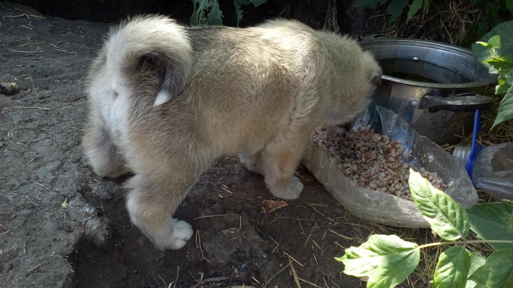 Едим сами, щенки очень активные... рычат, друг друга покусывают и лают...