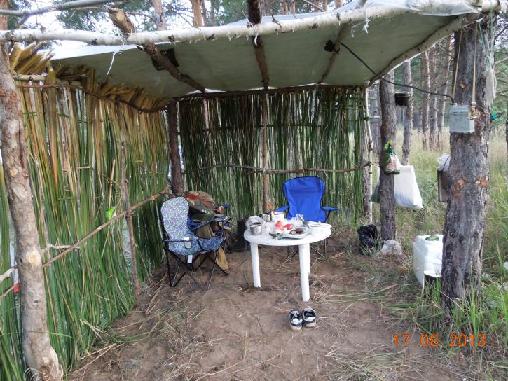 с полем всех. место парни заняли еще с четверга, я к ним в пятницу вечером приехал с товарищем. пока палатку раскинули, вещи стали раскладывать, слышим шлагбаум наш кто то ломает с матом-егеря с ментом подъезжают и удивляются, типа вы че это трезвые? соседи у вас уже лыка не вяжут. к вечеру шашлык, все дела, посидели. шершня пивом напоили-даже погладить себя дал)). в субботу с утра на воду. лет не шибко хороший. так, одна-две. но зато лысухи вобще страх потеряли- я в лодке сижу, а они метров в 20-ти дефилируют. вобщем за неимением утки на шулюм гидроворону пустили. вечером лета вобще не было, видимо плохо за охоту поднимали)) или непогоду утка почувствовала-ночью гроза, дождь зарядил до утра. в воскресенье с утра сворачиваться начали и в 10 утра уехали.