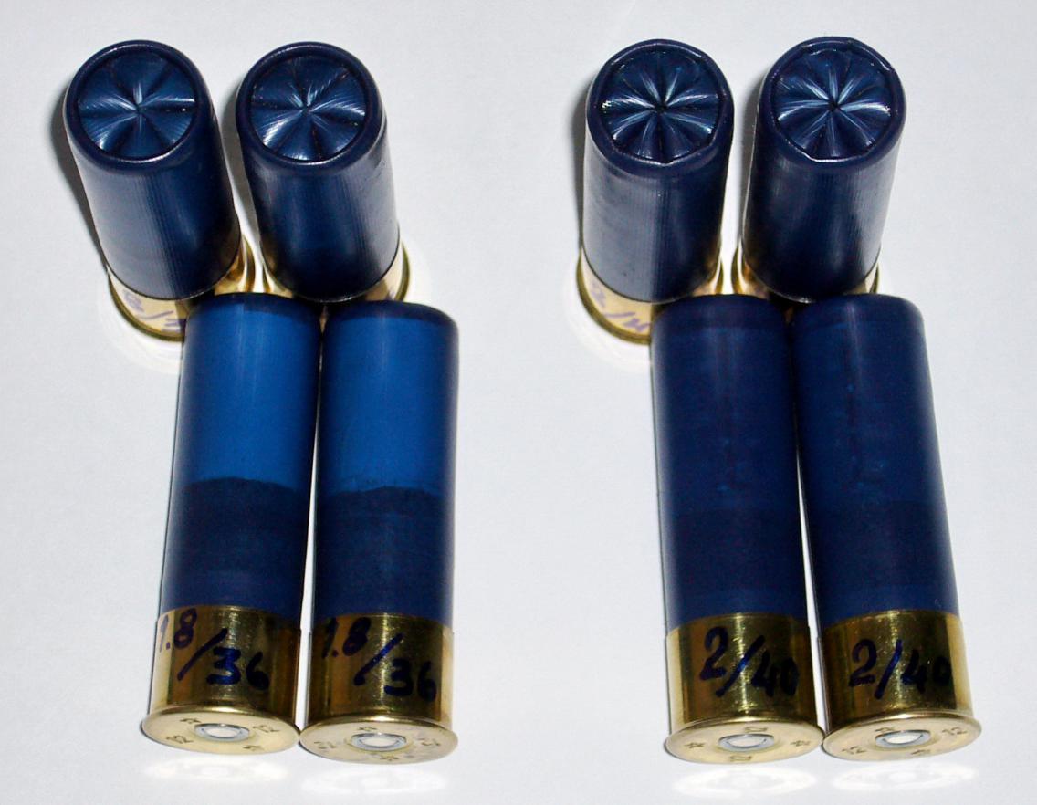 Гильза 12/76, МВ-36 1,8гр, обтюратор от Биор-а Н18 (Гуаланди, Феттер), Диана Н13 с добором пробка, "Рубашка" бумага 3-и слоя, Дробь 36гр №1, №2, с пересыпкой пробковой "мукой", закрытие звезда с подкруткой. Гильза 12/76, М92s 2гр, обтюратор от Биор-а Н18 (Гуаланди, Феттер), Диана Н13 с добором пробка, стаканчик от П\К ГП Н10, дробь 40гр №0, №1, закрытие звезда с подкруткой. |