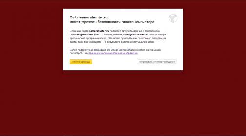 - писано в окне следущее страница сайта самарахантер пытается загрузить данные с зараженного сайта englishrussia.com типа там размещен вредоносный код что за дела, ка сюда захожу так все, меня не пускают