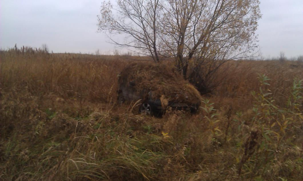 В субботу вечером высадили чучела (фото 1), замаскировал машину (фото 2), замаскировался сам (фото 3), но взять никого не удалось. Утка летает слабо. Был только один нормальный налёт на чучела, но промахнулся. Ближе к темноте пошел снег.
