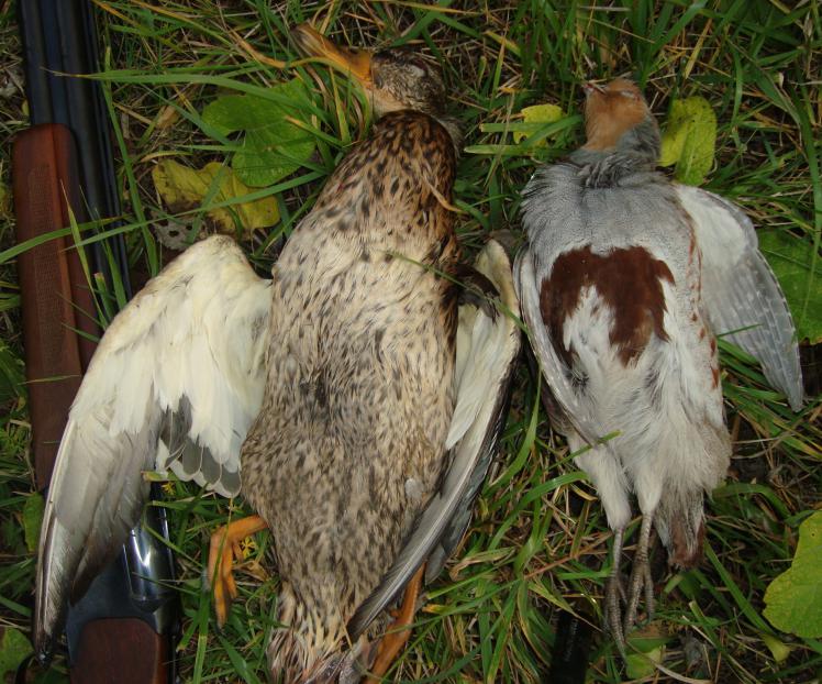 Все утро простоял с чучелами, осадил одну стайку голов в 30 с высоты метров в 100, манок и чучела оправдывают себя на все 100%, вот результат.