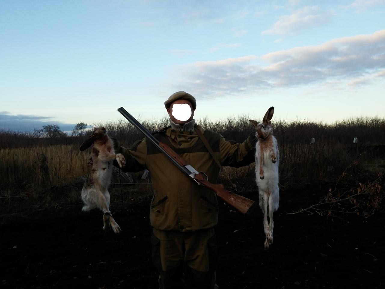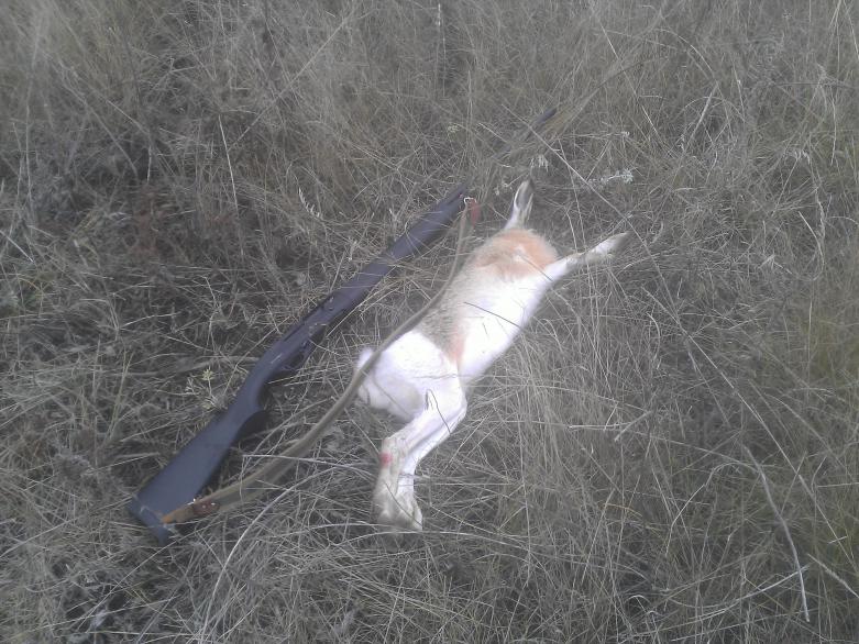 трава высокая решил собираться домой, иду к машине и вот тебе не доходя машины метров 50 мой дружок подымает зайку вскидываю стреляю заяц в одну сторону сабака в другую, что за хрень должен работать а он встал в ступор пришлось добирать зайку. Ну ладно молодой ещё семь месяцов ему первый раз увидел зайца. Ну ни чего всё ещё в переди будет работать. Да ещё клеща с себя дома снял с шеи не успел присосаться вот зараза осень на дворе а они все ползают, так что будте внимательны.