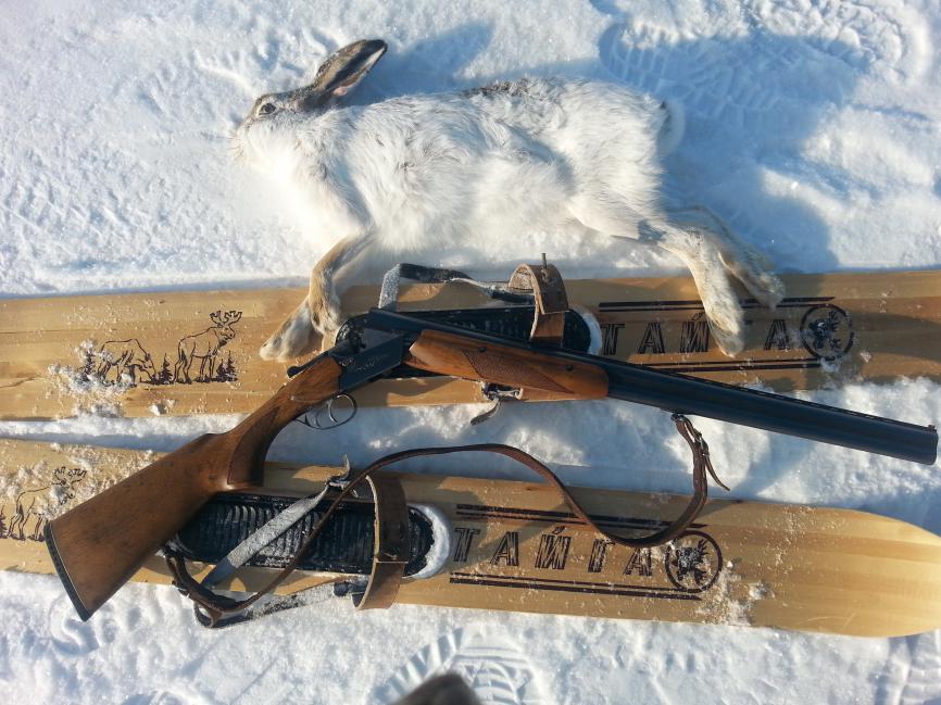 Сегодня с другом вдвоем нагулялись вволю. Погода супер,тишина. Видели трех.Первый и второй лежали от дороги в 7 и 10 метрах.Первый,хитрющий, ушел без выстрела,далековато было. Второго взяли.С дороги свернул в посадку и тут же без скидок лег,дурачок. Третий в развалинах, коровниках гулял.Ушел используя естественные складки местности.Стрелял два раза,смазал.Фото не будет,зайца взял друг.