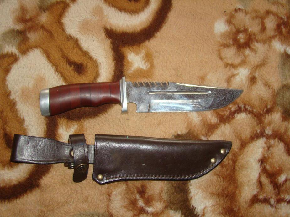 1. Нож "свинорез", марку стали и пр. не знаю, кто-то подогнал, не помню, видимо самопал, но так ничего вроде, колбаску режет ) я такими не пользуюсь - цена 500р.
