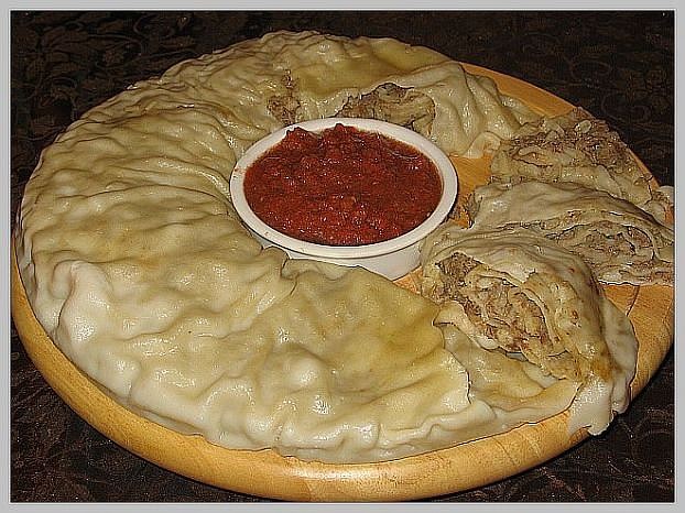 Ингредиенты: Для теста: · 1 яйцо · 50 - 100 мл воды · 1-2 столовые ложки масла растительного · муки сколько возьмет тесто Для начинки: · фарш · 2 моркови · 2 головки лука · соль · перец Приготовление: Замесить крутое тесто, которому дать отдохнуть, пока готовим начинку. На крупную терку натираем 2 моркови и 2 головки мелко порезанного лука, слегка обжариваем. В мясной фарш добавляем специи, соль, можно потереть картофелину. Тонко раскатываем тесто, выкладываем мясной фарш, на него -овощной. Сворачиваем все в плотный рулет, укладываем на смазанную маслом пароварку (можно выложить на фольгу и запечь в духовке). В воду добавляем лавровый лиcт, душистый перец и немного соли. Варить 40 минут. Выложить в блюдо, полить маслом. Подать томатный или сметанный соус. |