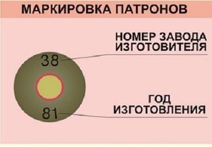 Около капсюля на боевых патронах стоит № завода изготовителя и год выпуска.