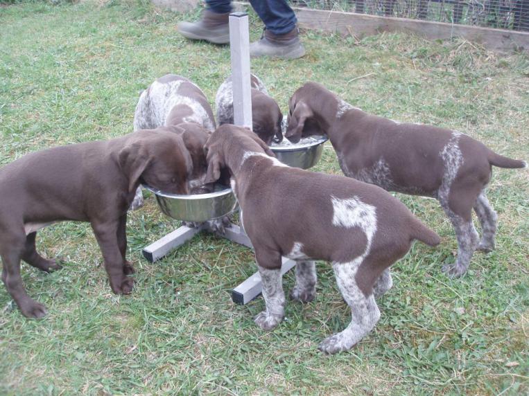 Щенки начали разъезжаться по новым домам, свободны две пегих суки и кобель.