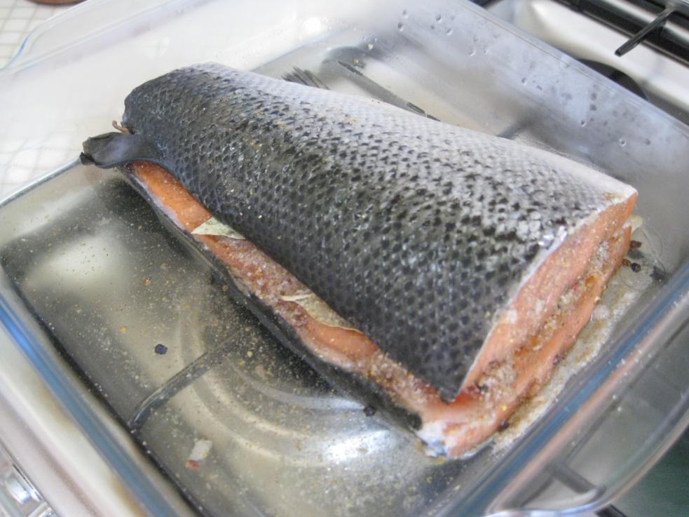 Пожалуйста.Вчера "поймал" форельку.Рецепт простой,вырезал позвоночник,повыдергивал какие смог,ребра.Смесь(2к1 соль саxар,черный перец столовая ложка).Этой смесью намазал куски положил лаврушку и душистого перца горошком.Кусок на кусок и в xолодильник на 3 дня.