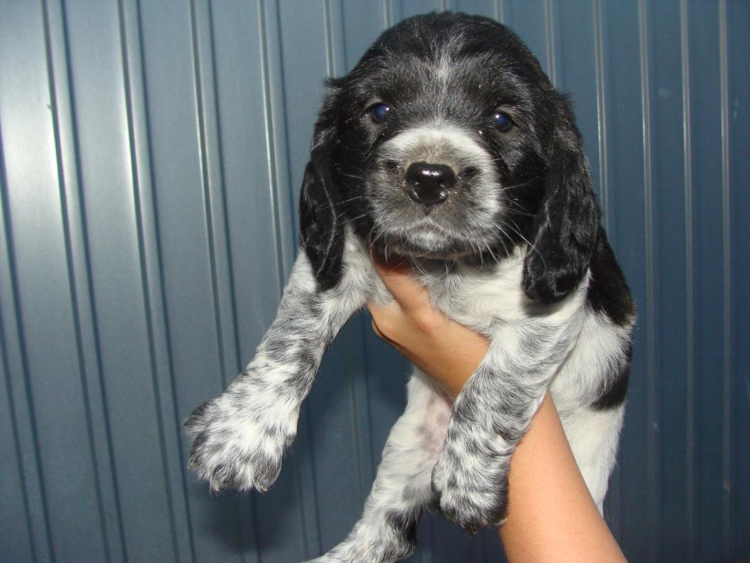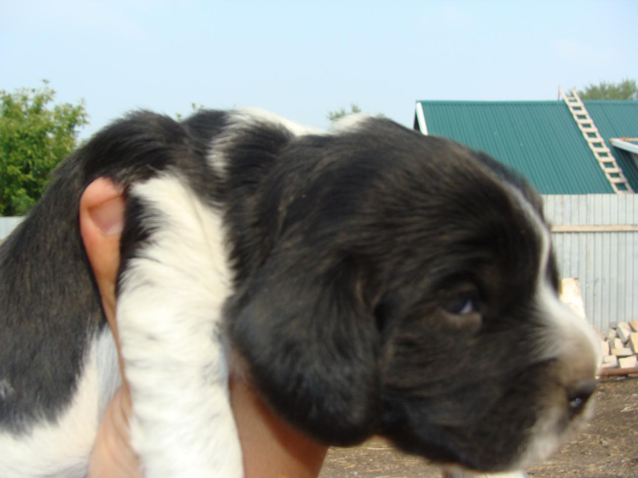 Щенки появились 12.07.2016 года. Два кобелька, одна сучка. Окрас у всех черно - пегий в крапе. В продаже к 12.08.2016 г., один кобель и одна сука.