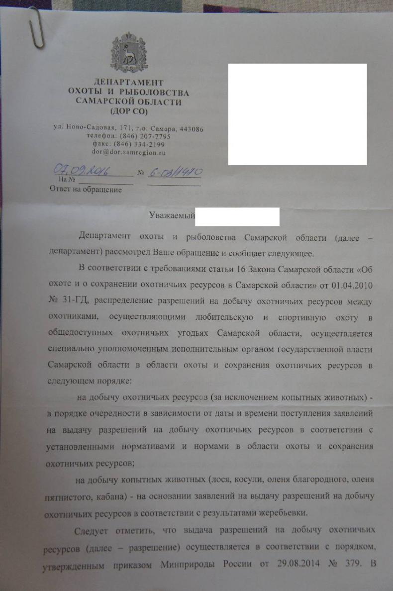 отправил заявление с просьбой пояснить отсутствие лицензий на барсука, косулю и путевок на кабана в Приполжское ОДОУ.