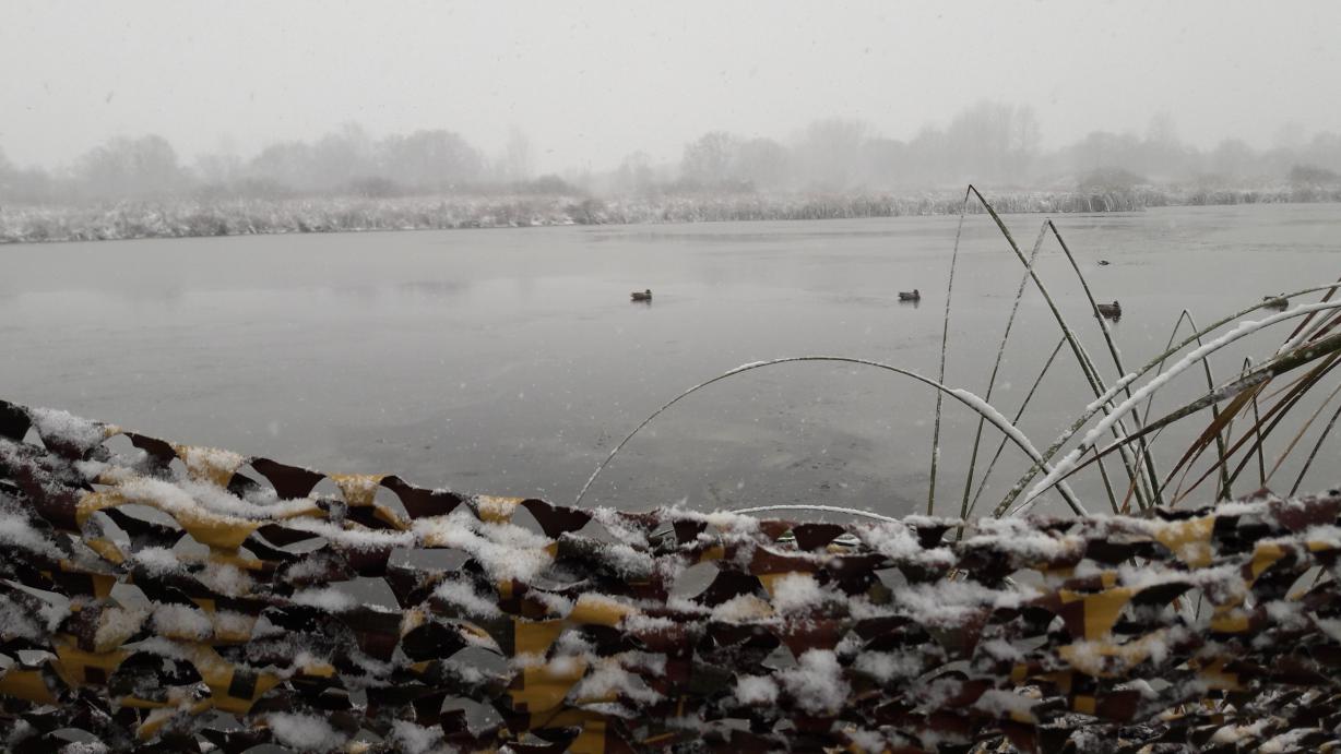 В основном баклуши забиты снегом со льдом, но на некоторых "окна" имеются... Лет был средний, но вечерка впечатлила своей красотой и не обыденностью! Красиво конечно, когда битая полновесная утка падает на снег!... Ну и как то так...))) |