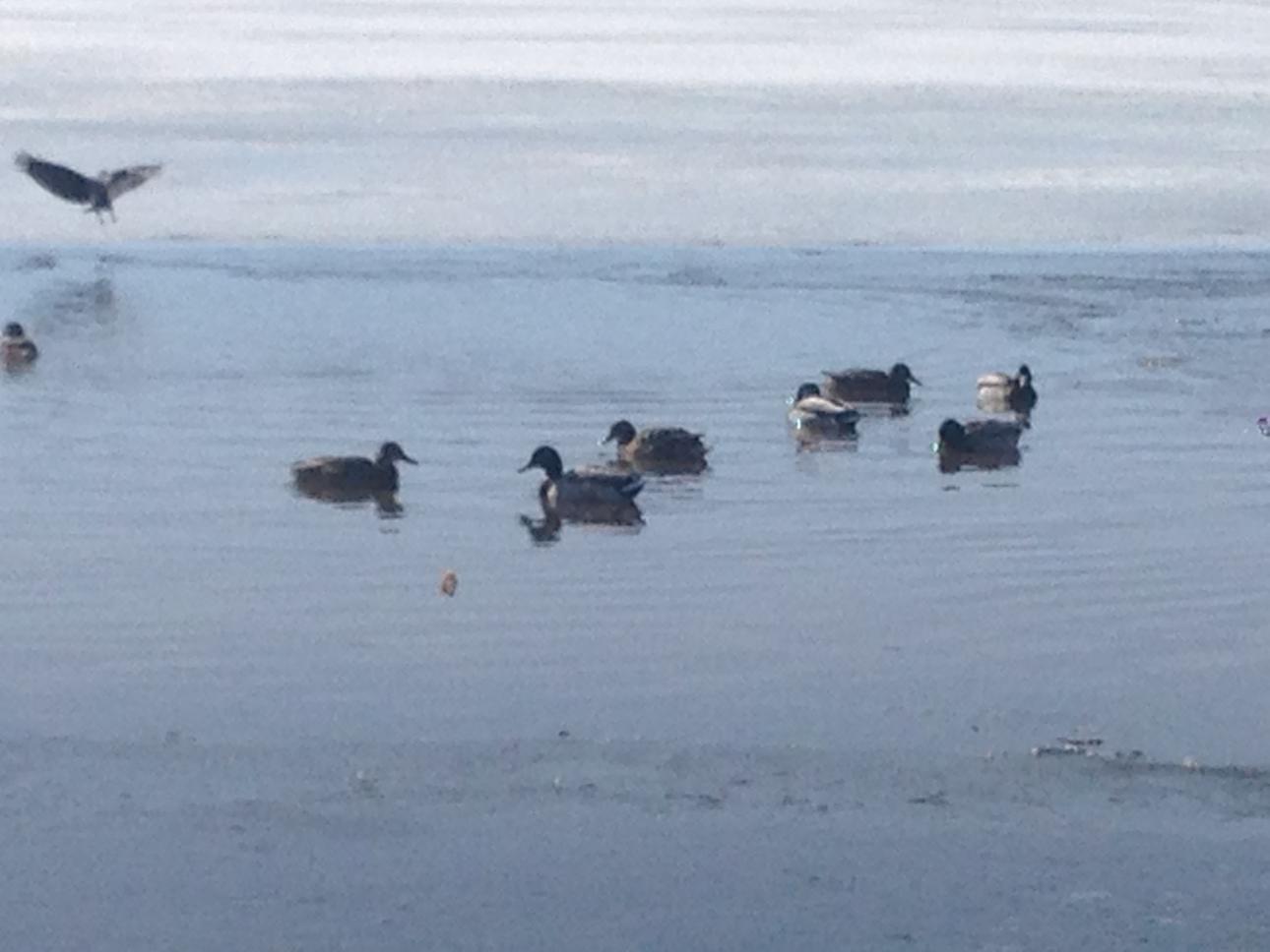 У нас под Новркуйбышевском тоже утки зимую на нефтеямах. Прилетит на чистую воду сядет а от неё нефтяные разводы расходятся