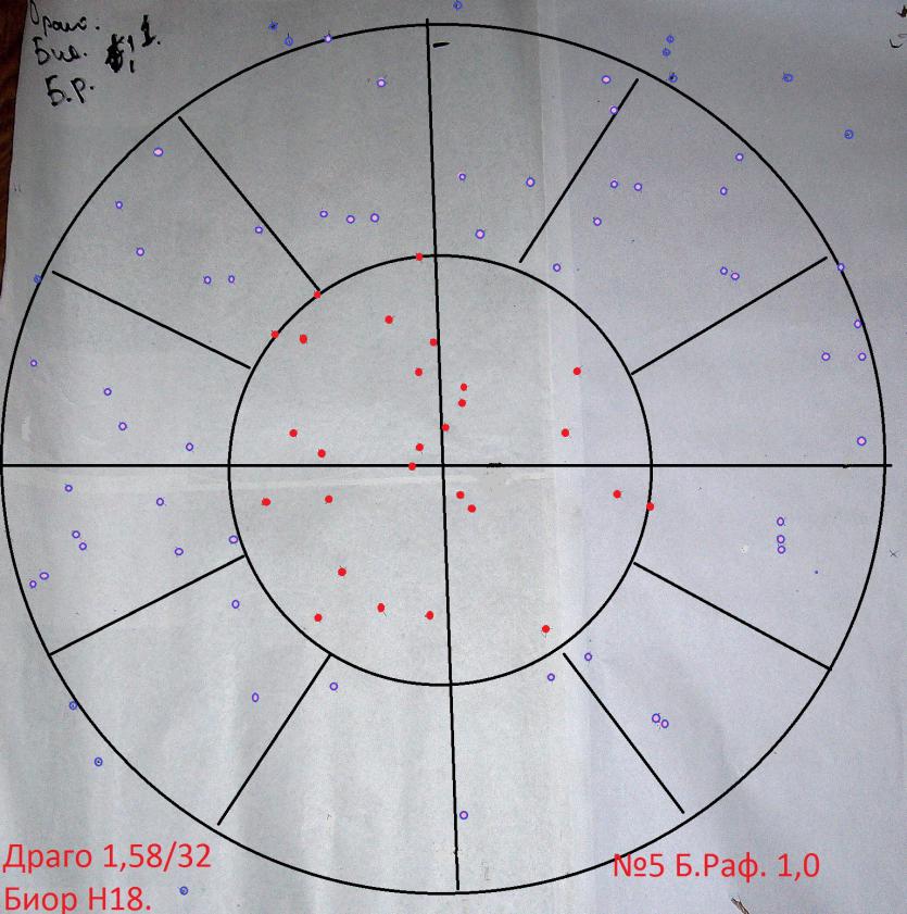 Сам знаешь, навески производились "баночные", так сказать первичные, от чего плясать. Поэтому как бы первый результат. Жаль что не забрали мишеньки с твоего Бекаса, для сравнения. Ну да ладно, в следующий раз...)) И так: 1. Гильза Фиокки, сх-2000, Драго 1,62г., П/К Феттер Н14, дробь №5 34г., звезда, подкрутка Гаеп №4. 2. Гильза Шеддит\ Феттер\РС (низкий донный пыж) сх-2000, Драго 1,58г., Биор от Феттер Н18, дробь №5, 32г., звезда, подкрутка Гаеп №4. Сборка ровная, амор. на П/К и Биоре, не передавлены. |