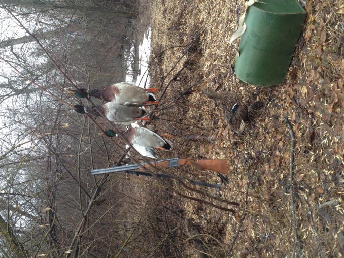Восстанавливая силы после гусиных охот, решил отдохнуть чутка и посидеть на селезня с подсадной. Как обычно: мы с дичью разъехались в разные места, пока я его на воде ждал, он в полях летал. Но все же ребята немного взяли и мы приземлили пару штук (один правда свалил в утренних сумерках, так и не нашли).