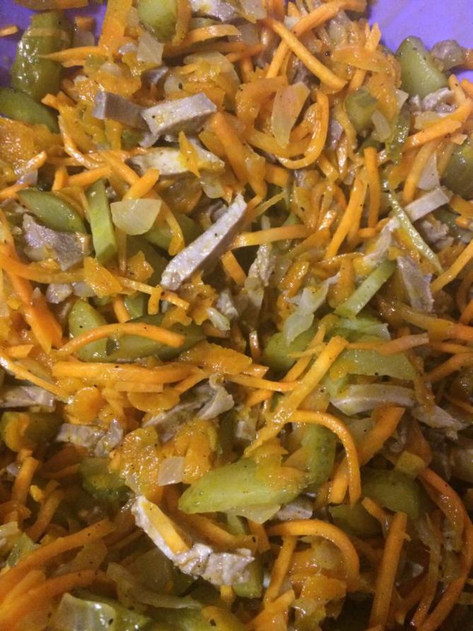 Чуть не забыл... Итак нашел я пару языков косули с прошлого года в морозилке... Интернет курил, но кроме заливного мало кто, что готовит, по совету товарища решил впервые! приготовить салат. "Обжорка из языков косули": язык отварил 1.5 часа в соленой и поперченой воде. Под холодную воду и почистил пленку.Далее натер свежую морковь и нарезал лук (репчатый), обжарил на подсолнечном масле. Добавил корнешены маринованные и морковь по корейски. Можно кушать с майонезом, а можно с оливковым маслом - все очень вкусно и разнообразие опять же... Приятного аппетита коллеги!