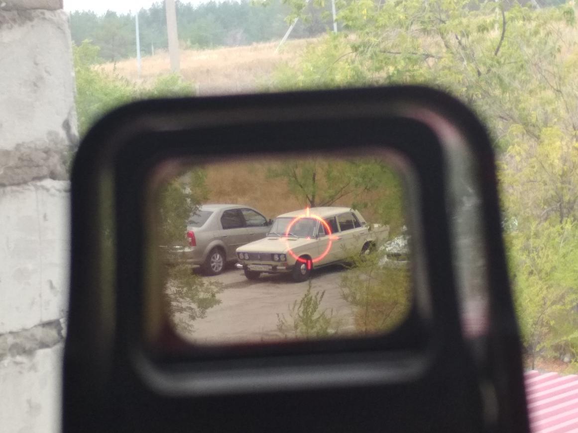 Коллиматор! Не голографический. Марка точка в круге с рисками, универсальное питание 4шт лр44(в любом магазине есть) . Регулировка яркостимарки и 2 цвета(красный зеленый