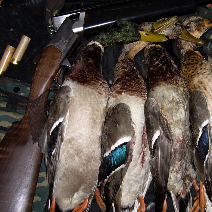 съездили на утрянку, в 5 уже на месте. собрали лодку и поплыли. подплывая на место подняли из камыша трёх пернатых, ну ладно ещё темно. нужно расставить чучела. ветер сносит и осложняет задачу, но преодолели. залезли в камыш одели костюмы и начали манить. и вот понеслись стаи за стаями. дождь фигачит, но на летающая утка отводит мысли от холода и сырости. за утрянку взяли трёх кряковых и одного Гоголя. ещё одну не нашли что немного огорчило так как думали что глушняковая. назад на веслах да против ветра это конечно жесть и почему в этот раз мотор не взяли, а он нам очень помог бы. налетала местная, а вот пролетная плотными стаями рванула куда то в неизвестное. будет ещё время и её по стрелять. так что порцию дождя и позитива на сегодня нам хватило за глаза)). всем ни пуха других!!!!