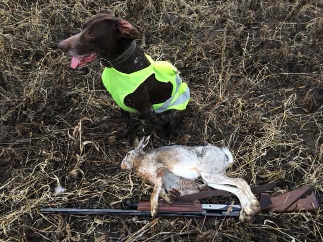Сегодня как по нотам )) Через 15 минут первая работа , поднялось штук 10 одну взял , больше не стал.Через еще 10 минут опять стойка, причем стоит мордой ко мне и неуверенно как то, подхожу и на встречу мне бежит русак.Первым зацепил вторым тоже попал! Первый раз со стойкой- заяц. Раньше за осень брал одного стабильно, но случаяно восновном. Кладу в рюкзак и понимаю ,что охота закончена , тяжелый зайчишка , да и распогодилось больше никого не хотелось стрелять сегодня. Потом заехал в магазин( дома весов нет) взвесил 5500 . Надеюсь собаку зайцем не испорчу,стрелял шумовых и раньше. Да и собаке 5 лет., думаю не должна в гончака у меня превратиться...) Написал в теме "по перу" тк. Цель была все же перо