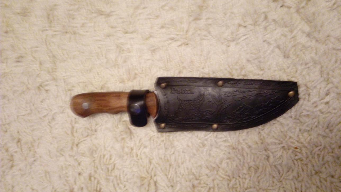 Продам новый нож Рысь производства Кизляр,либо обменяю на оборудование для самокрута 12к.Длина общая 27,клинка 15см, ручки 12 см. Цена1300 Комплект нож,кожаный чехол,паспорт.