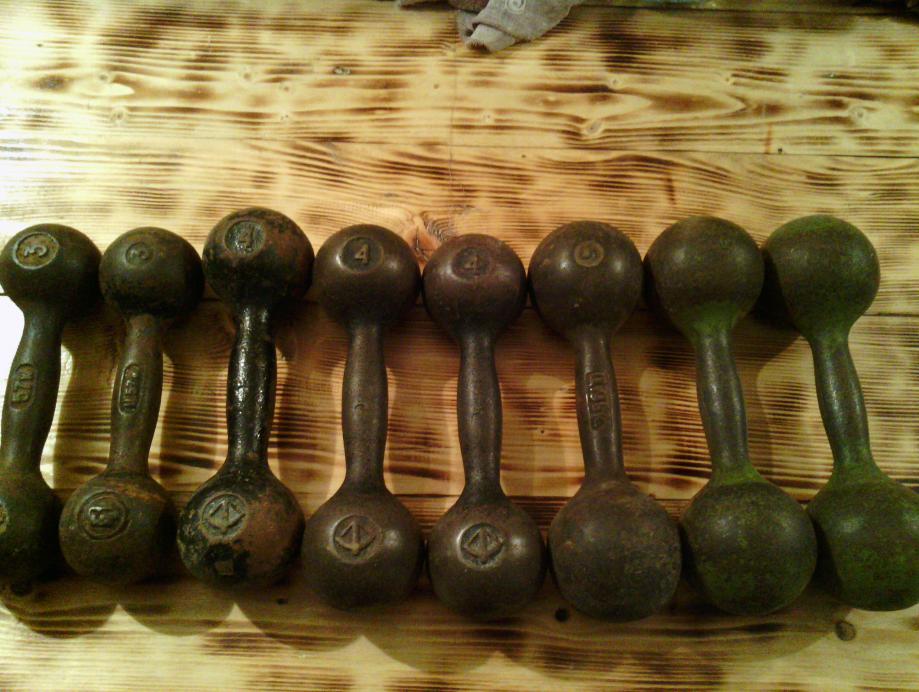 гантели советские 5 кг. - 3 шт., 4 кг. - 3 шт., 3 кг. - 2 шт.