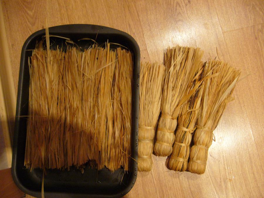 Ну вот, закончилась работа над первым костюмом, выложу что получилось. Вязалось лыко с добавлением льна, соотношение 70/30 % на сетку под бредень, ячейка 20х20. Предварительно сетка варилась в луковой шелухе, по ликало, снятым с халата. Сетка вырезана и края пришиты к полоскам из ткани. В итоге заготовки были сшиты в одно целое.