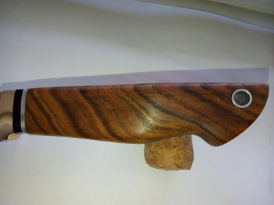 3. Сталь кованная 95х18. Длинна клинка 130 мм, ширина 28 мм, толщина 4 мм. Больстер латунь битый камень. Рукоять натуральное дерево Ясень. Бритвенная заточка. Покрытие клинка ручной сатин . Ножны кожа свободный подвес. Твердость 57-59 ед. Цена 3500 руб.